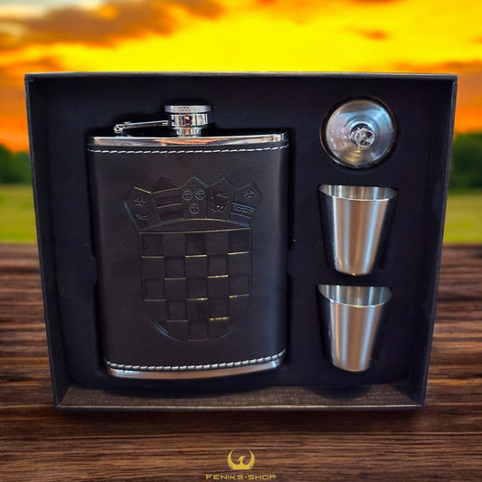 Poklon set pljoska CRO + 2 čašice i čep lijevak ( 3 modela )