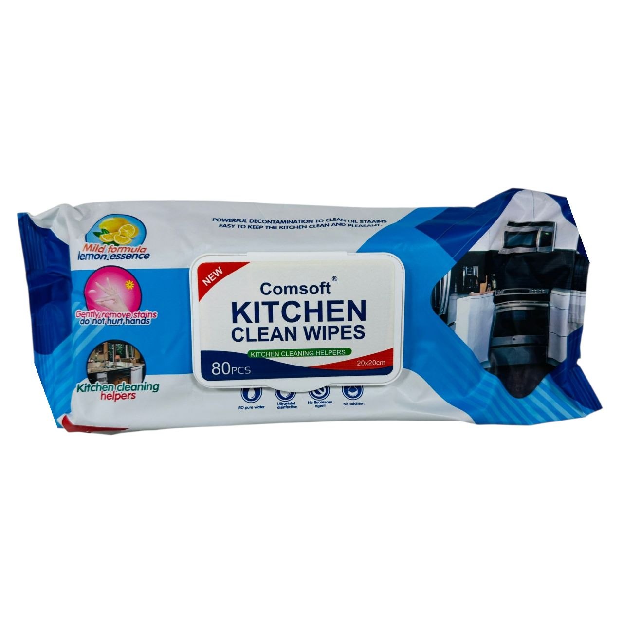Comsoft vlažne maramice za čišćenje kuhinje idealne su za brzo i učinkovito uklanjanje masnoće, prljavštine i ostataka hrane. Zahvaljujući blagoj formuli s mirisom limuna, čiste bez isušivanja kože i bez potrebe za ispiranjem.